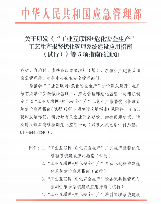 近日,应急管理部危化司发布了关于印发《“工业互联网+危化安全生产” 工艺生产报警优化管理系统建设应用指南 (试行)》等5项指南的通知,通知中对“工业互联网+危化安全生产”培训管理系统建设给出了具体指导要求。