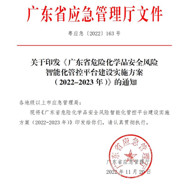 重点解读《广东省危险化学品安全风险智能化管控平台建设实施方案》(粤应急〔2022〕163号文)