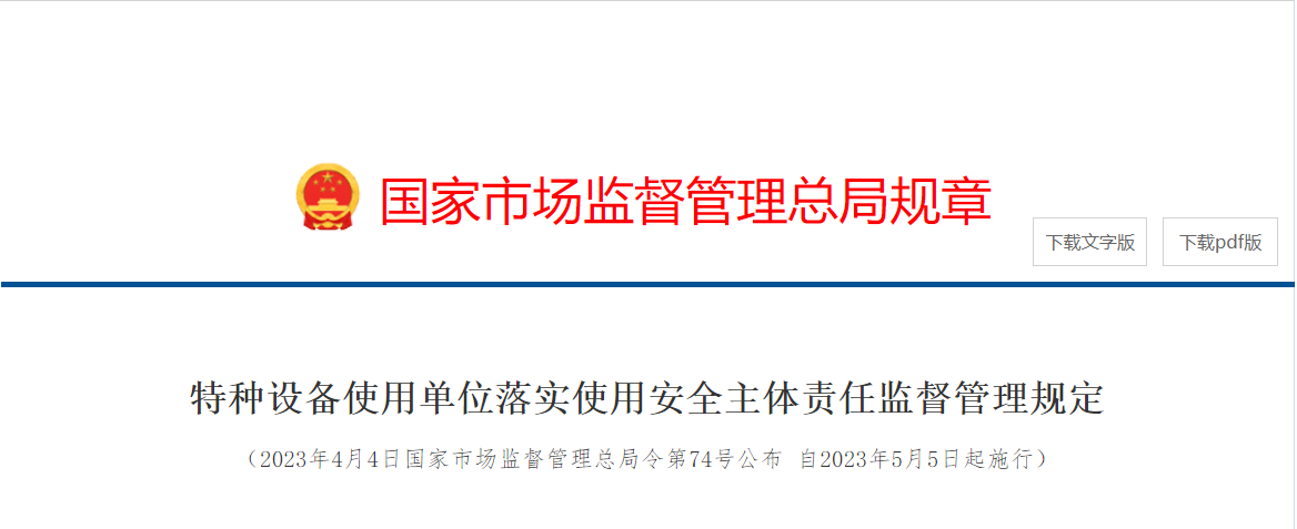 《特种设备生产单位落实质量安全主体责任监督管理规定》和《特种设备使用单位落实使用安全主体责任监督管理规定》将于5月5日正式施行。