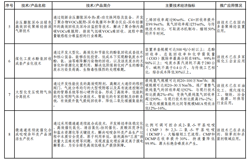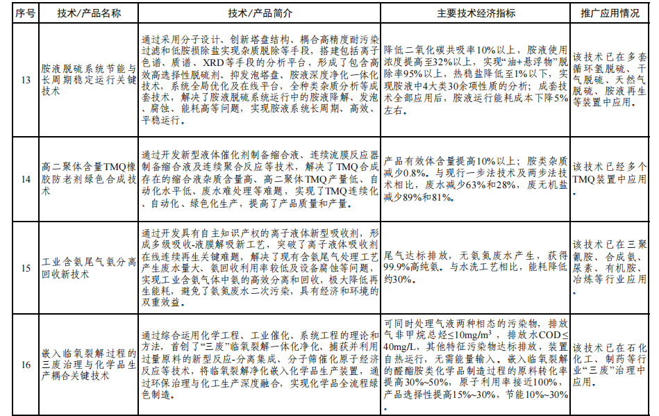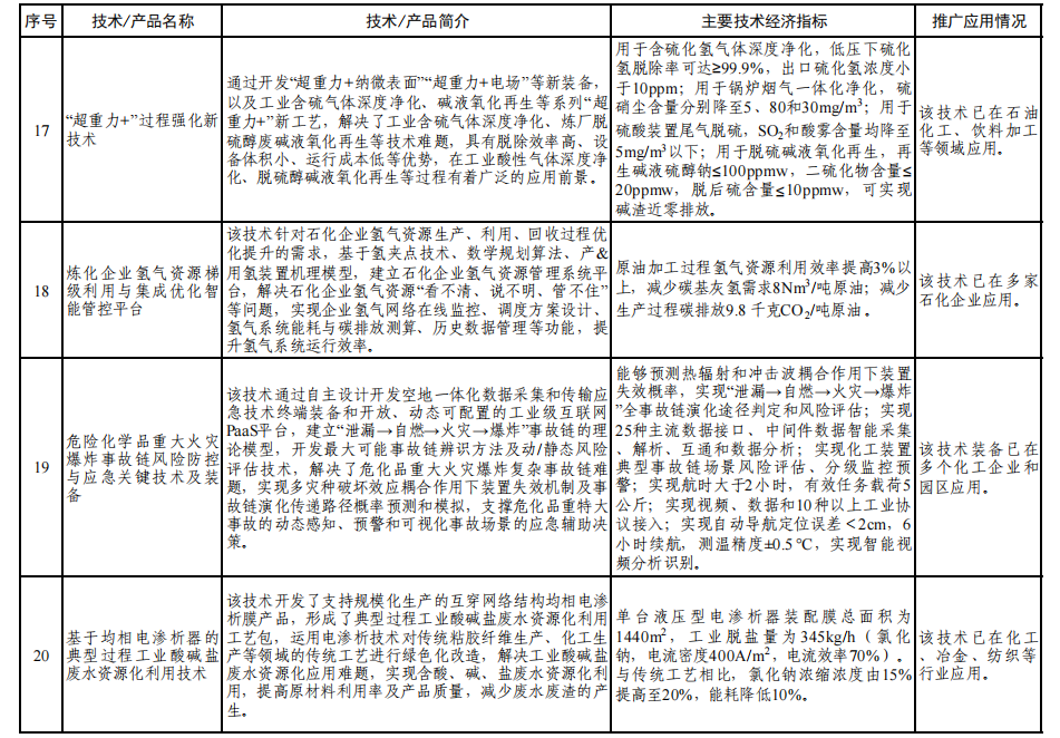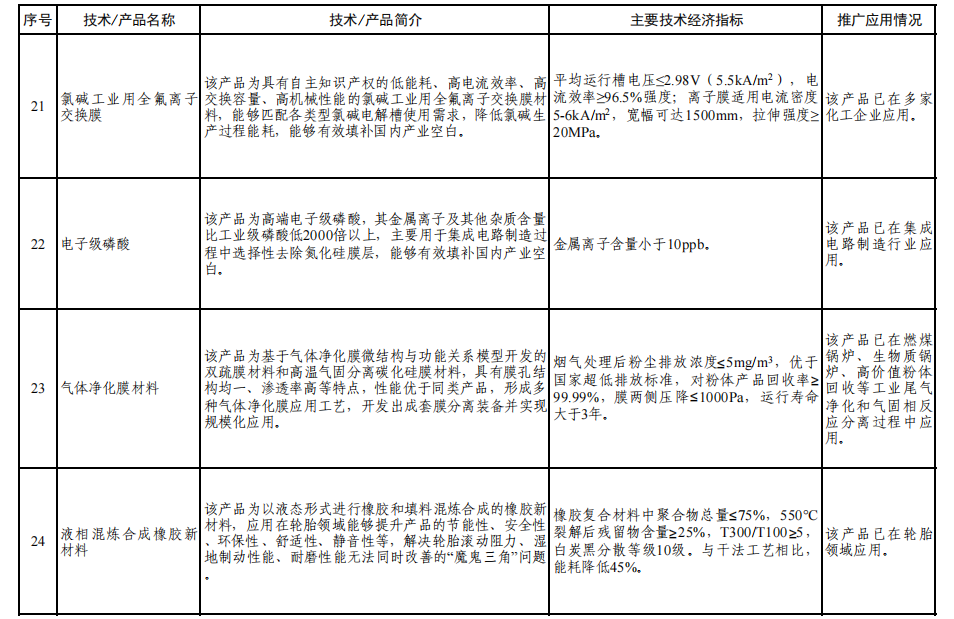 2021年8月,工信部公布第一批石化化工行业鼓励推广应用的技术和产品目录,共有32种产品和技术。