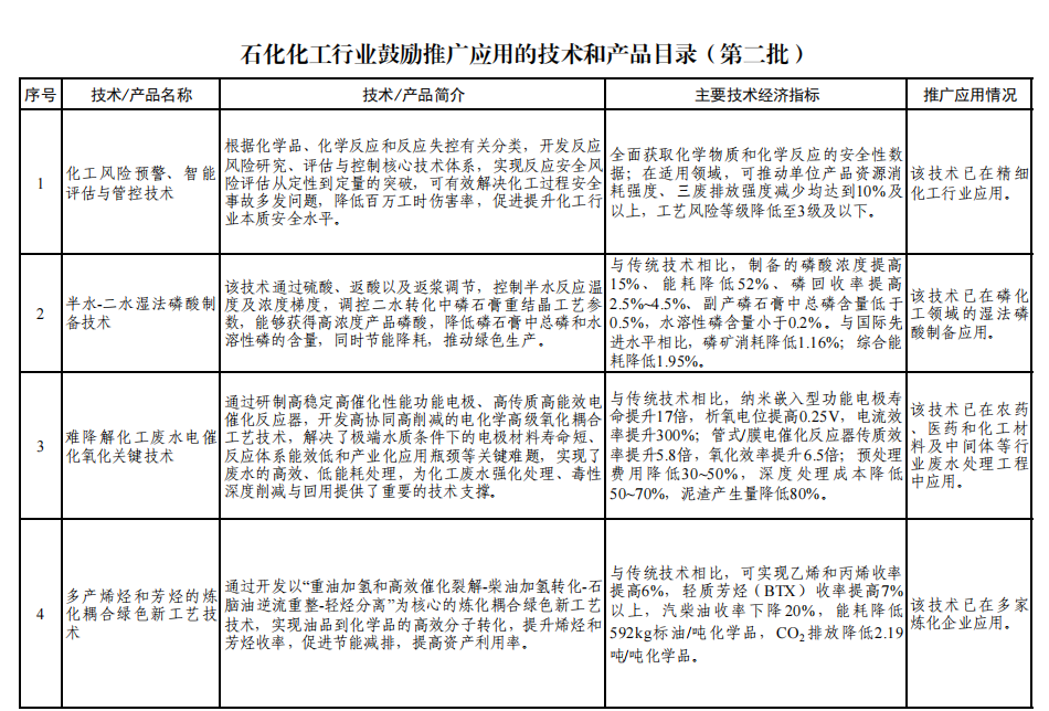 8月7日,工业和信息化部网站正式公布了第二批石化化工行业鼓励推广应用的技术和产品目录。