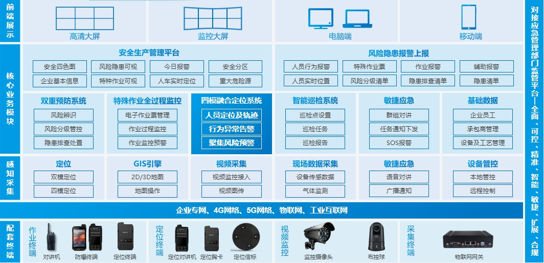对此,海融易通企业智能化管控平台来助力!海融易通作为专业的企业生产安全信息化建设服务商和解决方案提供商,在公网对讲、融合通信、融合定位、智能视频、AI边缘计算等领域具有多年深厚技术沉淀,紧抓“人的不安全行为、物的不安全状态、环境的不安全因素、管理缺陷”四个着力点,成功开发出国内领先的企业安全风险智能化管控平台,现已成功服务于石油化工、工业气体、复合肥、高分子材料、煤炭、制药等工业代表性行业的数千家领军企业,产品和服务均获得了客户的高度评价。