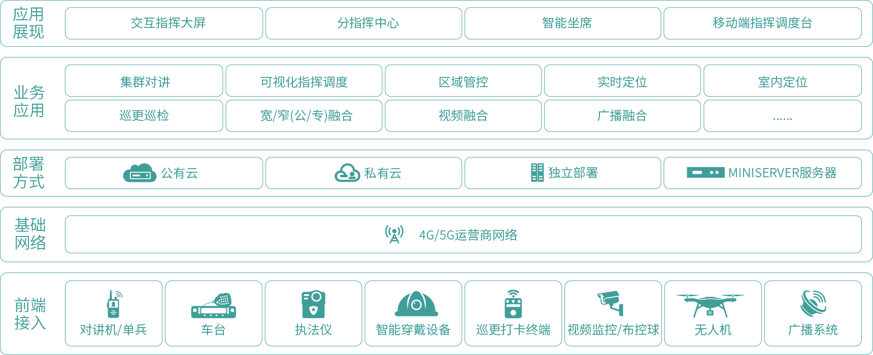 可视化指挥调度系统支持POCSTARS公有云服务(授权账号)、独立部署、MiniServer小型服务器部署,客户可根据需要灵活选择。